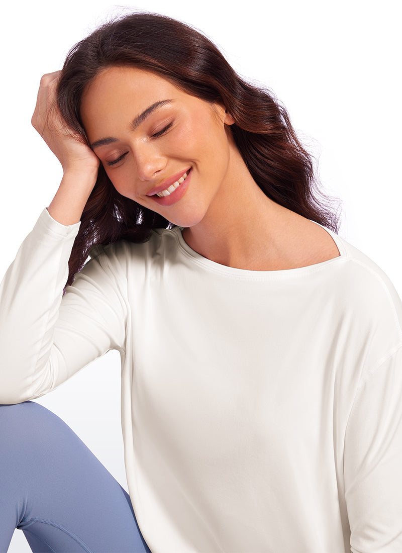 Made from Butterluxe-Light fabric, with the same softness and stretchiness but lighter experience. Bringing free and gentle coverage during yoga or daily activities by the loose fit and back hem design.